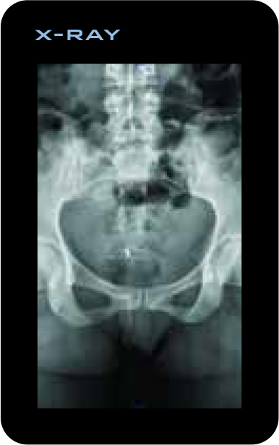 A sclerotic lesion in the posterior aspect of the left ramus pubis is seen using Nanox.ARC (red arrow) and not seen on the standard X-ray.